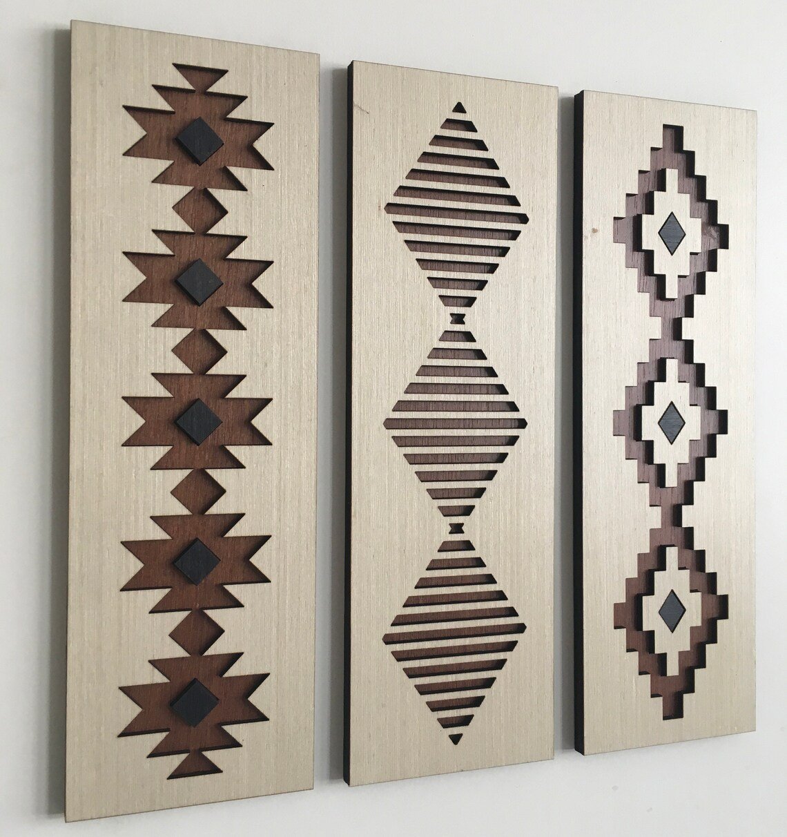 Geometric Wood Wall Art (Set of 3) – MDF Wood – Consists of many layer with different colors – size 60 x 80 cm