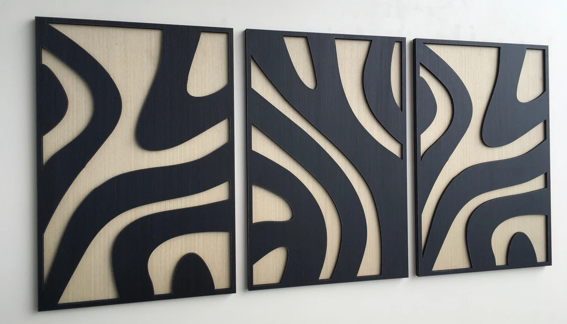 + Free ShippingModern abstract design with natural inspiration – Black and natural wood contrast for visual impact -MDF Wood